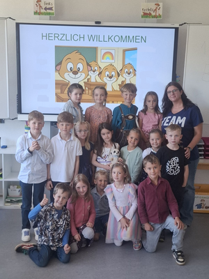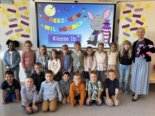 Mit Vorfreude und etwas Herzklopfen folgten die neuen Erstklässler schließlich ihren Klassenlehrerinnen Fr. Kärcher und Fr. Hölzer in ihre Klassenzimmer und nahmen dort an der ersten Unterrichtsstunde teil. Am Ende der Stunde wurden die fleißigen Kinder von ihren Eltern und Verwandten abgeholt. Zum Abschluss versammelten sich alle noch einmal draußen auf dem sonnigen Schulhof für das gemeinsame Klassenfoto – ein schöner Moment, um den besonderen Tag festzuhalten.